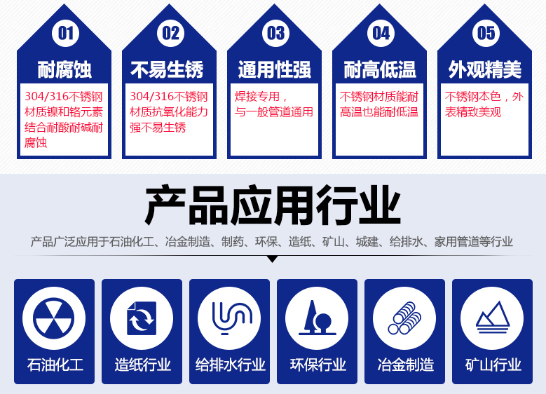 304/316不銹鋼彎頭被廣泛用于石油化工、冶金制造、制藥、環(huán)保、造紙、礦山、城建、給排水、家用管道等行業(yè)。